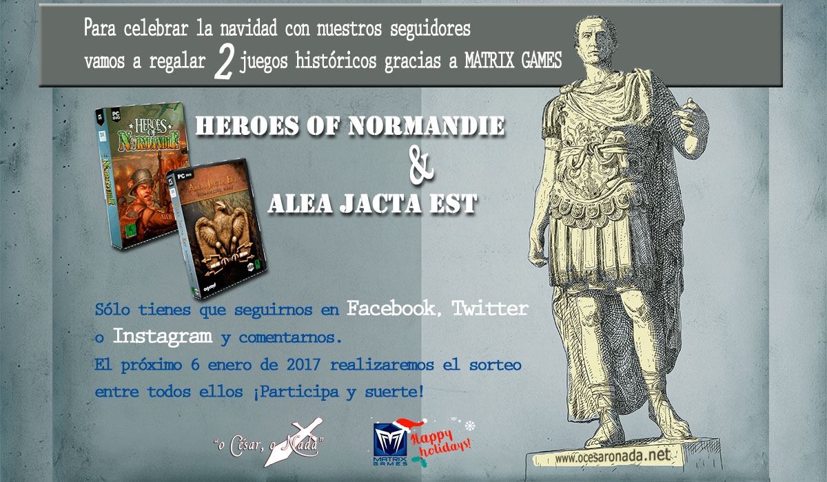 Para celebrar la navidad 2016 con nuestros seguidores, vamos a regalar dos juegos históricos: Heroes of Normandie y Alea Jacta Est, y todos gracias a Matrix Games.
